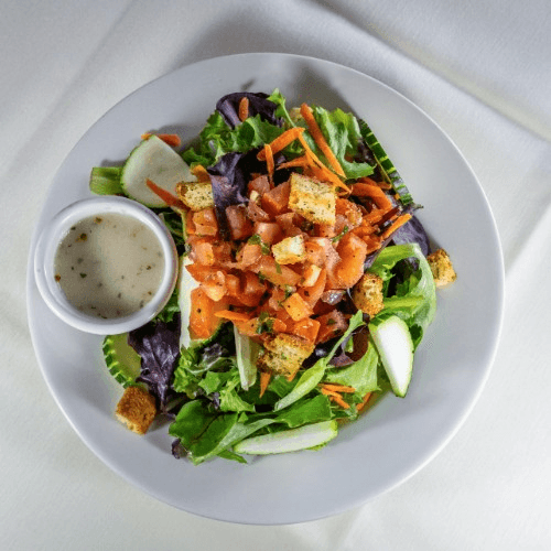 Mixed greens, zucchini, carrots, tomatoes, croutons, with Italian dressing