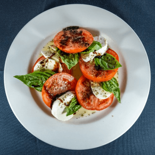Sliced tomatoes, fresh mozzarella cheese, fresh basil, with olive oil & balsamic reduction