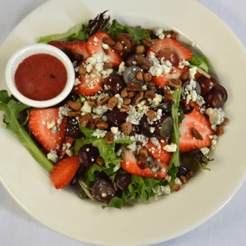 Mixed greens, grapes, candied pecans, strawberries & gorgonzola cheese, with an herb vinaigrette