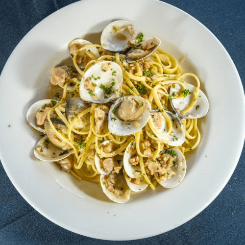 Fresh clams with your choice of red sauce or white wine sauce. Served with linguine pasta