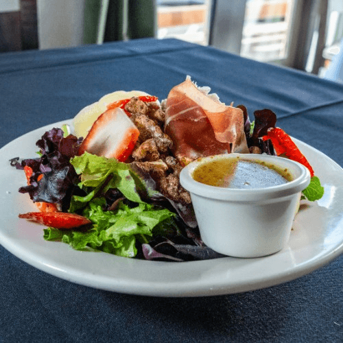 Mixed greens, prosciutto, candied walnuts, strawberries, pears, & gorgonzola cheese, with mustard seed champagne vinaigrette